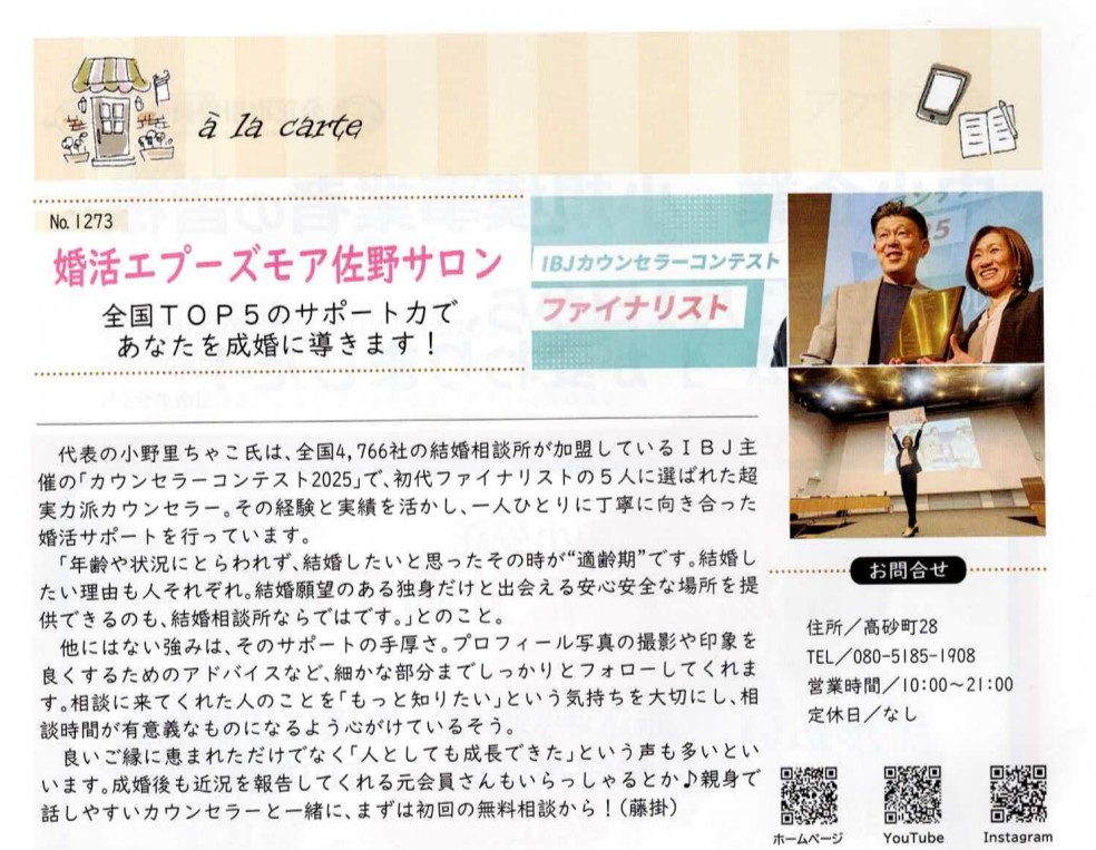 佐野商工会議所会報の中で、婚活エプーズモア佐野サロンをご紹介いただいています。